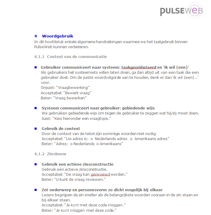 PulseWeb is e-learning systeem voor grotere organisaties. Het is mogelijk om lesmateriaal te schrijven (auteurs), in te plannen (planners) en te volgen (deelnemers).